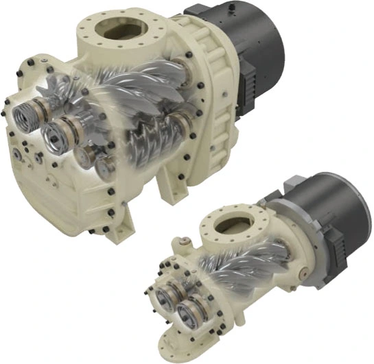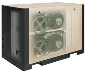 Παγκόσμιας κλάσης αεραγωγοί μονού και δύο σταδίων (διαθέσιμοι δύο σταδίων ξεκινώντας από 90 kW), μαζί με έναν επαγωγικό TEFC ή έναν προαιρετικό κινητήρα μεταβλητής ταχύτητας ελαχιστοποιούν τη χρήση ενέργειας.