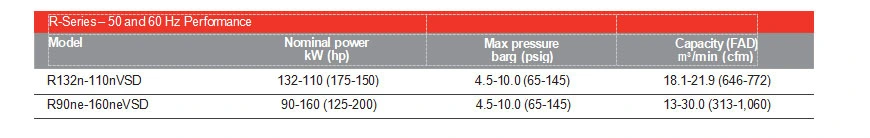 Ο συμπιεστής της σειράς R επόμενης γενιάς περιλαμβάνει έναν ολοκαίνουργιο, υπερσύγχρονο αεροσυμπιεστή, καθιστώντας τον την καλύτερη επιλογή για απόδοση. Το νέο airend βελτιώνει την απόδοση μέσω πολλών εξελίξεων, συμπεριλαμβανομένου ενός βελτιστοποιημένου προφίλ ρότορα για να ελαχιστοποιηθούν τα λειτουργικά έξοδα.