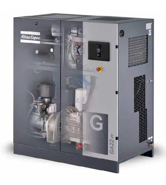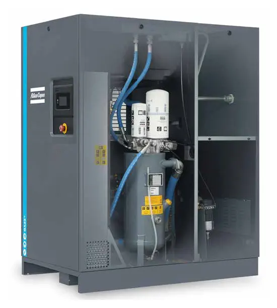 · Ο κοχλιοφόρος συμπιεστής με έγχυση λαδιού χρησιμοποιεί το βασικό σύστημα μετάδοσης κίνησης της Atlas Copco και το αποδοτικό κιβώτιο ταχυτήτων για πολύ υψηλή αξιοπιστία
