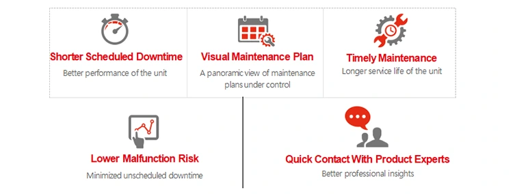 Θα απολαμβάνετε τακτική αποστολή ανταλλακτικών και υπενθύμιση καθημερινής συντήρησης, 5 χρόνια εγγύηση airend (για νέο περιστροφικό αεροσυμπιεστή RM με κοχλία)