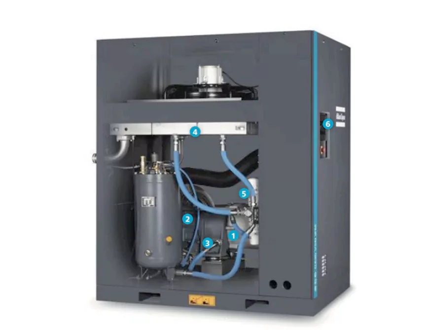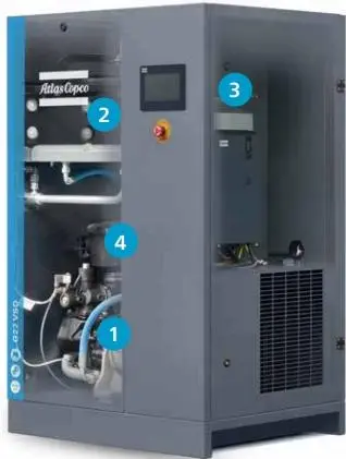 Ο αεροσυμπιεστής VSD Variable Frequency Air Compressor της Atlas είναι ειδικά σχεδιασμένος για συνεχή λειτουργία. Το σύστημα κίνησης υιοθετεί έναν αποδοτικό κινητήρα μόνιμου μαγνήτη, ο οποίος μπορεί να επιτύχει εξαιρετικό αποτέλεσμα ψύξης λαδιού. Η τεχνολογία VSD μπορεί να επιτύχει εξοικονόμηση ενέργειας έως και 35%, και το μικρότερο αποτύπωμά της εξασφαλίζει ευελιξία εγκατάστασης.